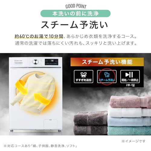 【スチーム予洗い】約60のお湯で10分間、予め衣類を洗浄するコースです。通常の洗濯では落ちにくい汚れも、スッキリと洗い上げます。※コース「綿」「子供服」「静音洗浄」「ソフト」のみ対応