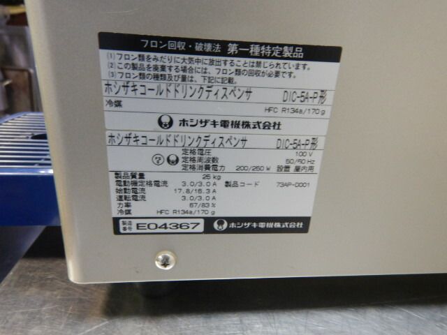 2005年製 ホシザキ コールド ドリンク ディスペンサー DIC 5 A P タンク式 mm 25 kg 冷水器 アイスコーヒー 整備済