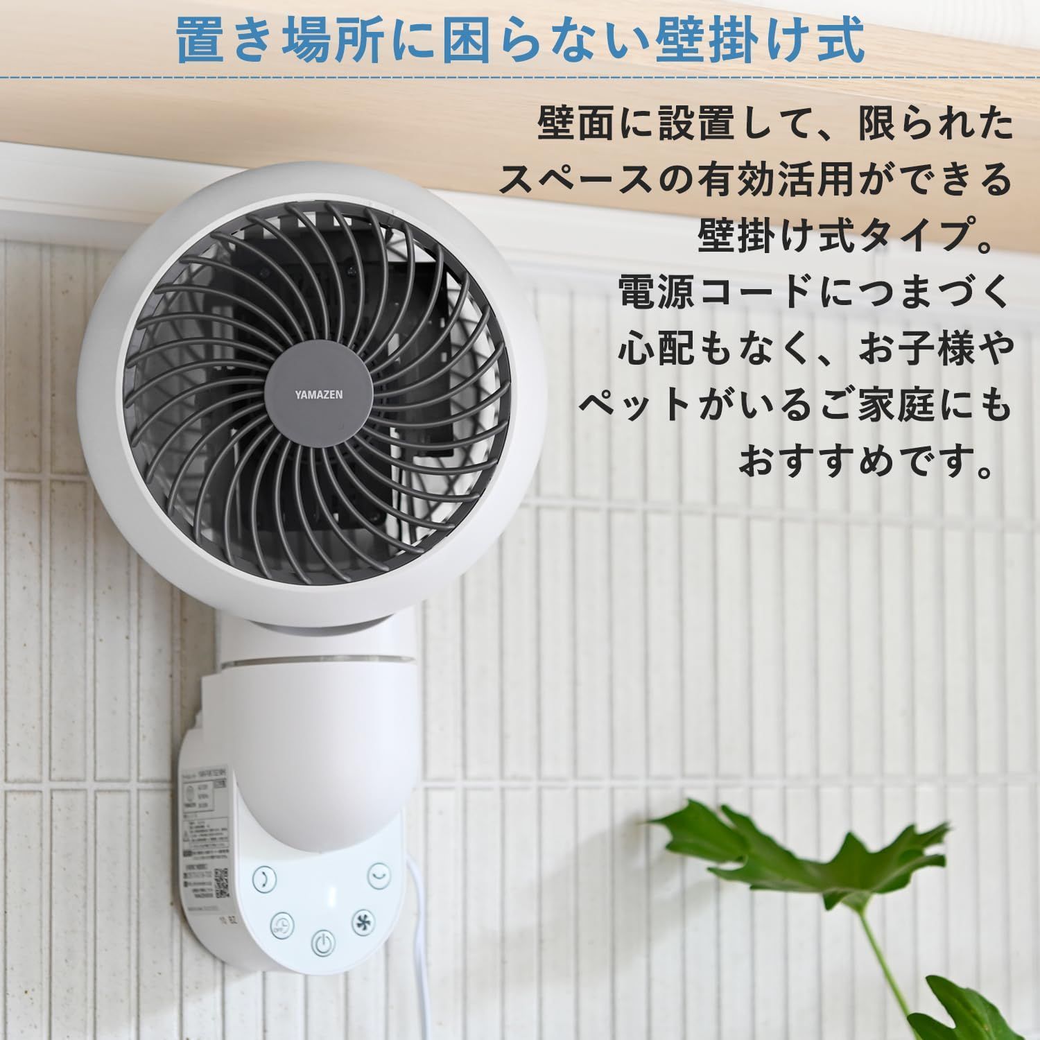 [山善] 壁掛式 サーキュレーター 静音 10畳 上下左右自動首振り タイマー付き 風量3段階調節 リモコン付き お手入れ簡単 ホワイトグレー YAR-FVK154(WH)