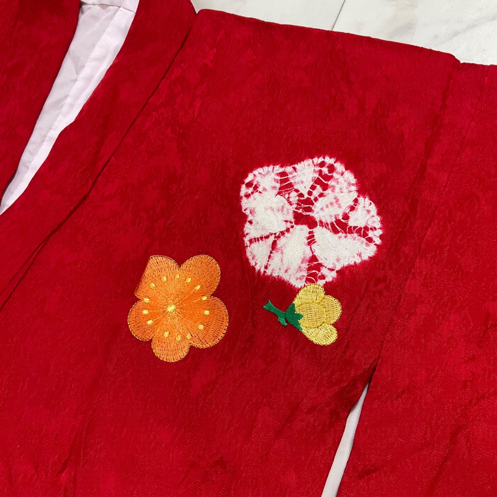 kimono one 同然 7歳くらい用 女の子着物 紅色 正絹 子供着物 手絞りと刺繍 パック襦袢付き 七五三 袷 裄59 5㎝肩丈128 5㎝ 七五三お詣り女の子着物こどものひお正月卒業式十三詣り G 310