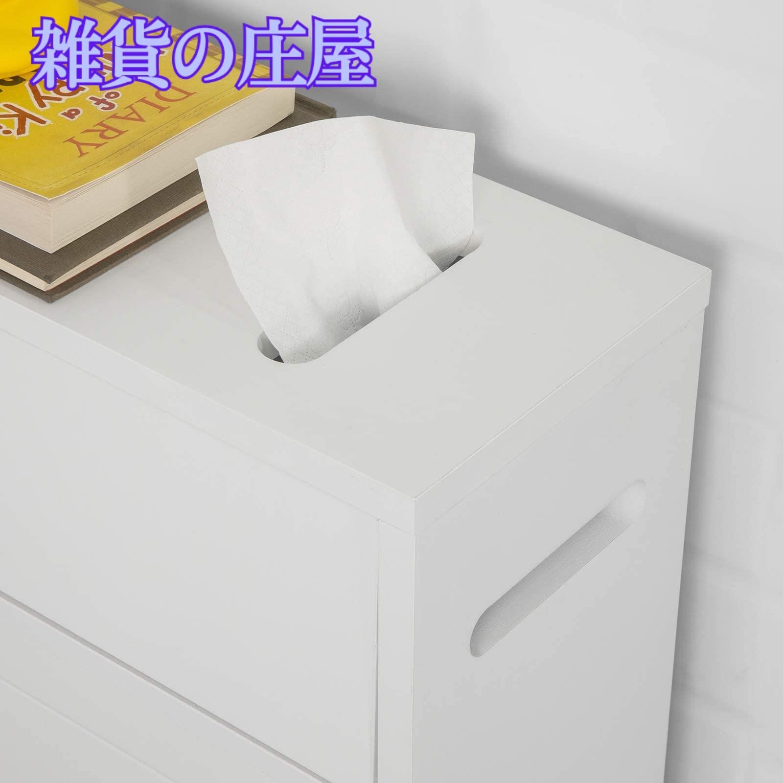 【トイレットペーパー収納】上段のスペースにトイレットペーパーロール最大4個まで収納可能!一個を横向きで置けば、便利に取り出しできます。