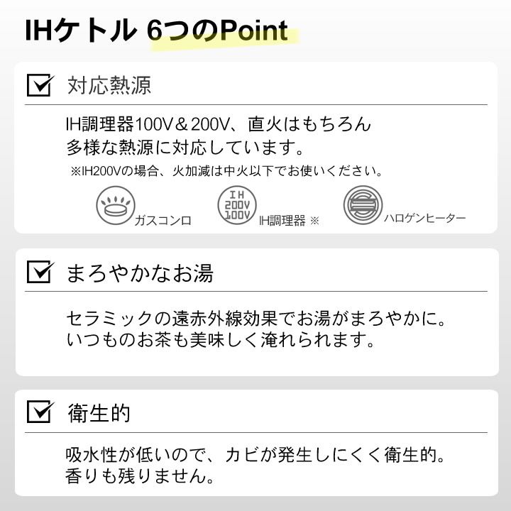 この セラミック製 の ケトル なら、長時間煮出しても金属臭がなく、 遠赤外線効果 で お湯 がふっくらまろやかに。