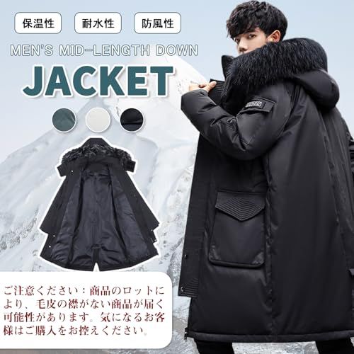 Kayiyasu ダウンコート メンズ ダウンジャケット 冬 中綿ダウン 超暖かい アウター モッズコート 防寒対策 フート付き取外し可 ジップアップ 防風 防寒 厚手 無地 おしゃれ お出かけpo 1045 bc 96