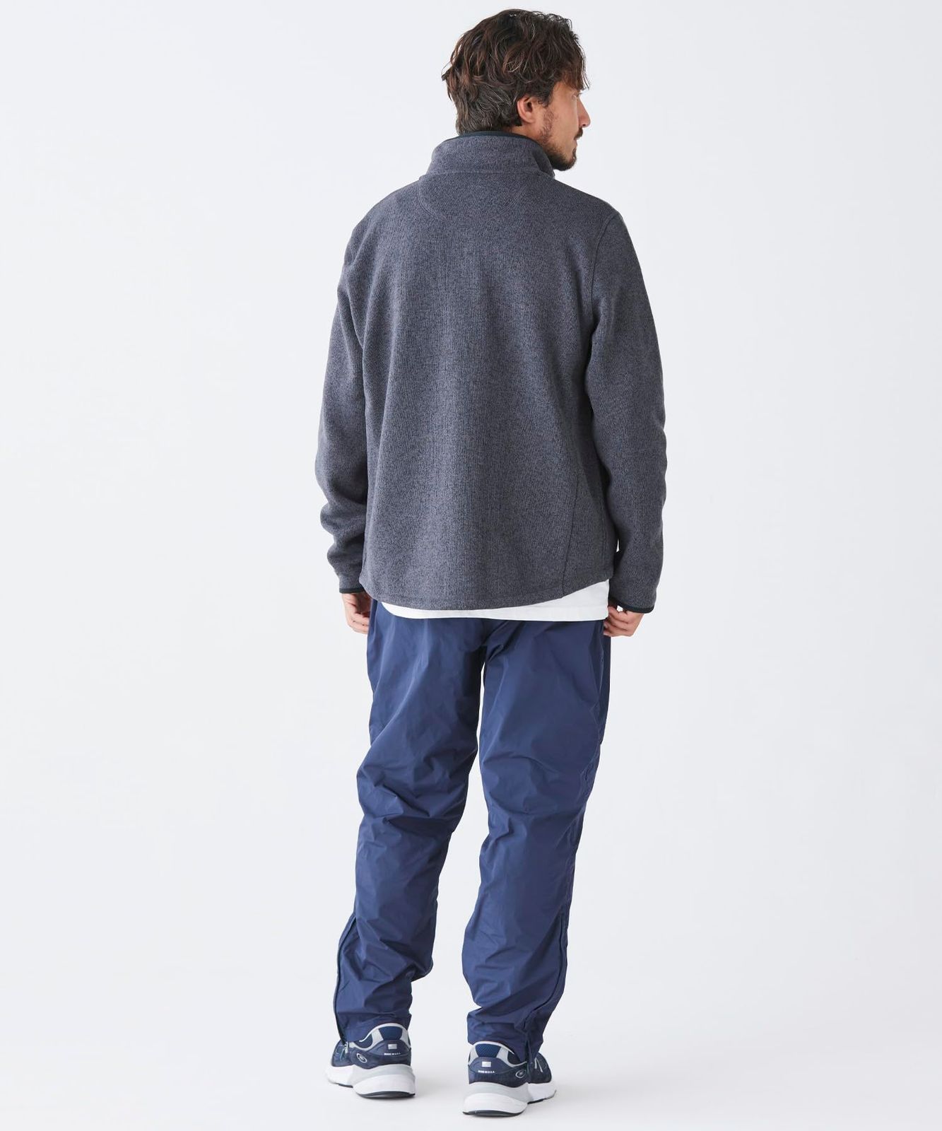 【素材&ケア方法】通気性と保温性を発揮する、丈夫なポリエステル100%製。外側は丈夫なセーター・ニット。内側は起毛加工を施したソフトなフリース。洗濯機の使用可。