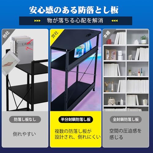 【モニターアーム対応可能】モニターアームを取り付けて、モニター下のスペースを節約します。自由に調整できるモニターアームは、腰の正しい姿勢を長時間保ち、腰椎を守り、健康な習慣を身につけるのに役立ちます。【収納MAX!可動式棚】パソコンデスクの下の棚は3段階で調節可能で、高さに合わせて自分なりのDIYができます。PCケースやライトノベル、花瓶などを手軽に収納でき、非常に便利です。