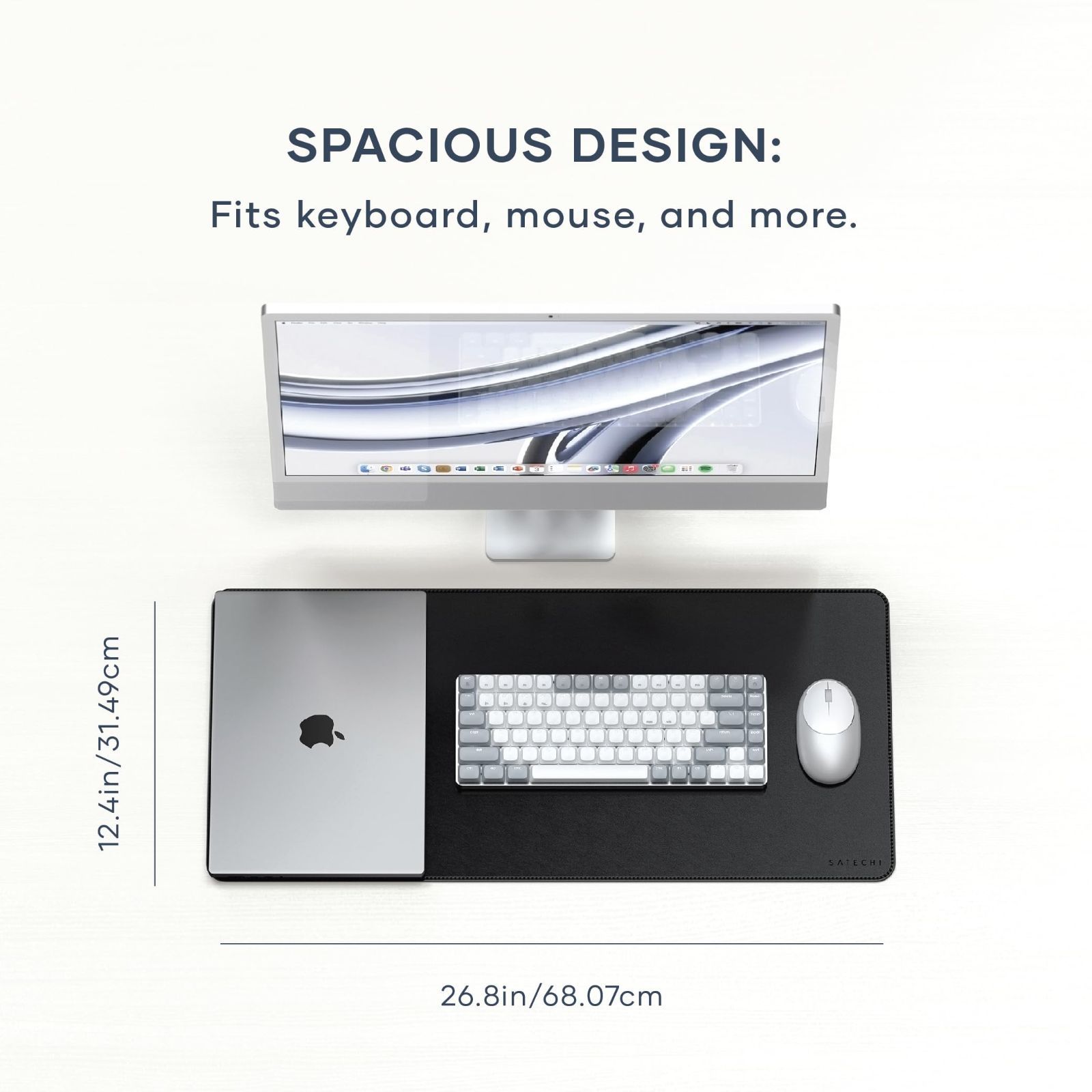 Satechi ヴィーガンレザーデスクマット 大型マウスパッド 傷・水に強い お手入れ簡単 オフィス・家庭用デスクパッド (68 x 31.5 x 0.3cm) (ブラック)