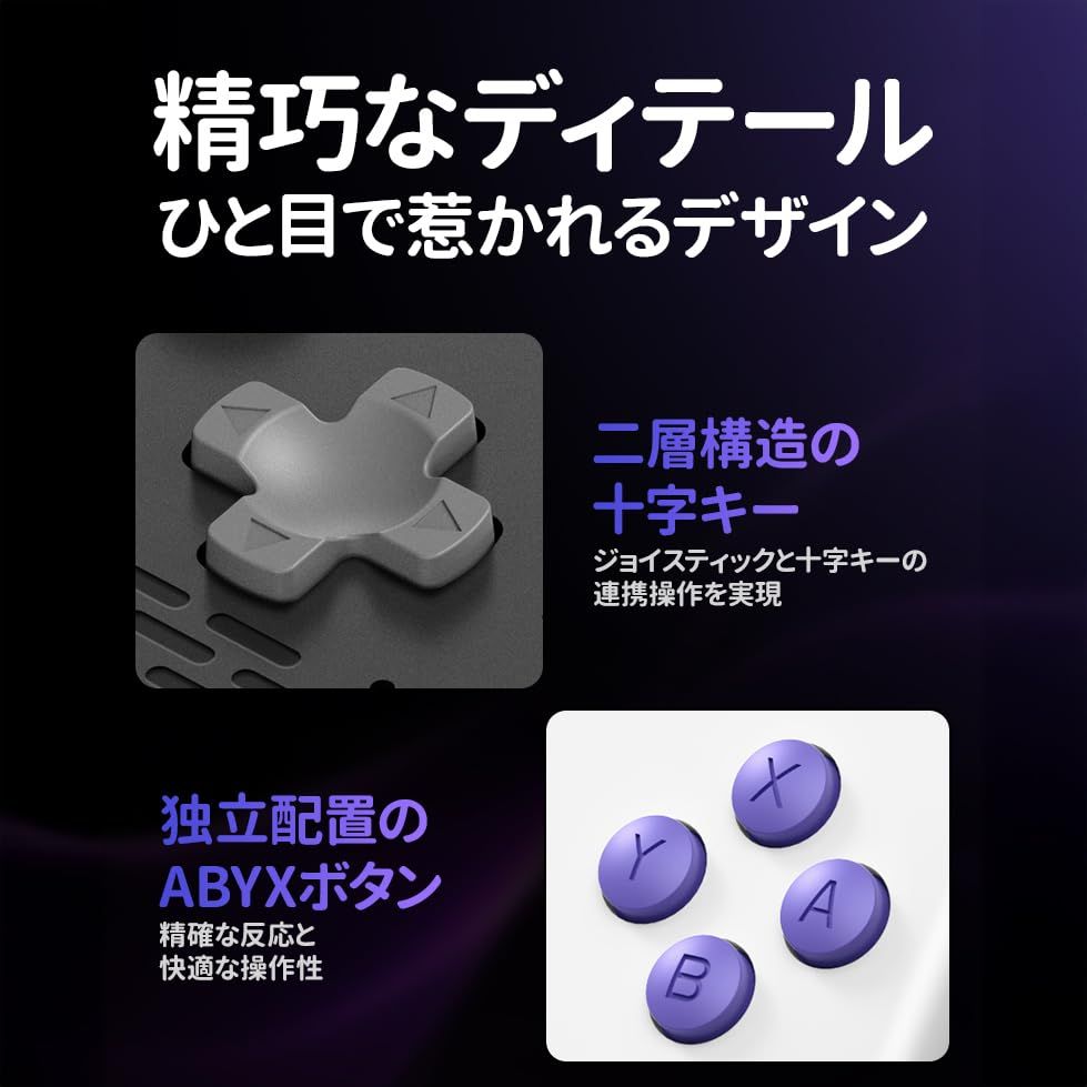 【4? ダブルジョイスティック&RGBライト搭載】 デュアルスティックによる精密な操作性と、ボタン周りのRGBライト演出がプレイ気分をさらに盛り上げます。