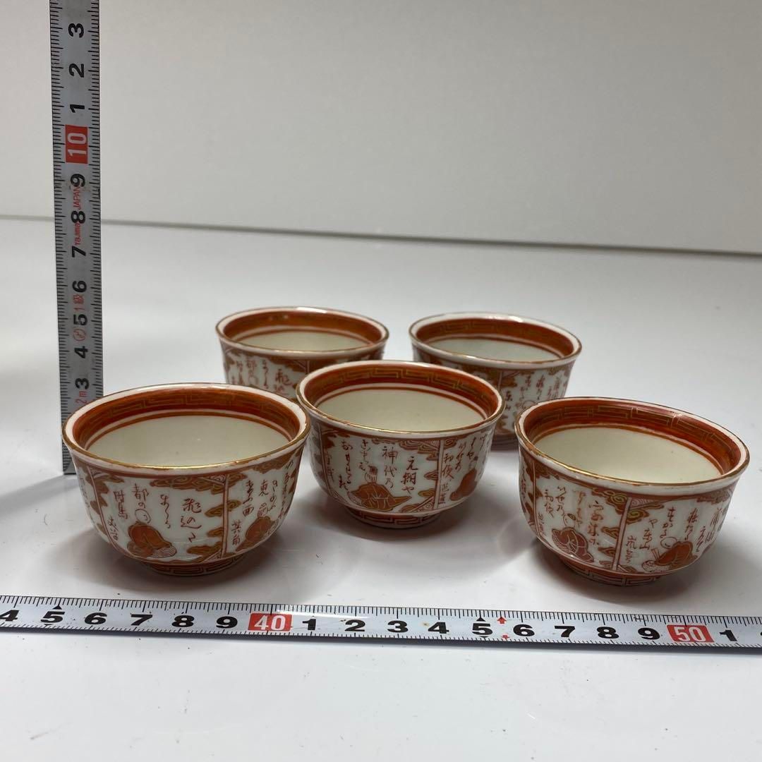 明治時代 九谷焼 赤絵 煎茶碗5客 共箱 トヒチ 東さ5 0716