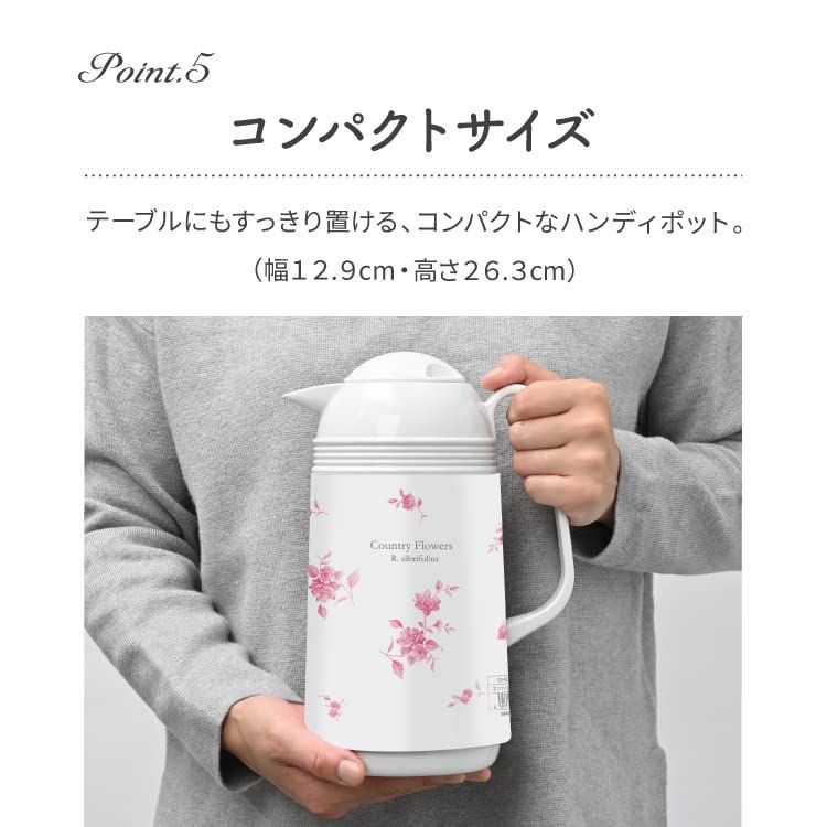 ピーコック魔法瓶工業(The-peacock) ピーコック 保温ポット 1.0L 保温 保冷 ガラス製 卓上ポット 魔法瓶 パッキン無し ハンディポット 保温力 電気不要 花柄 まほうびん ポット 日本製 カントリーフラワー GHD-100 FLC