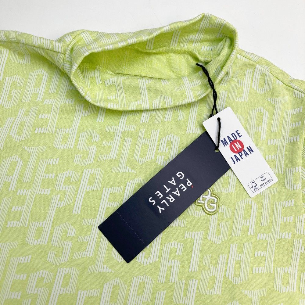 サイズ 0 PEARLY GATES パーリーゲイツ モデル ハイネック 半袖Tシャツ 総柄 グリーン系 ゴルフウェア レディース ストスト