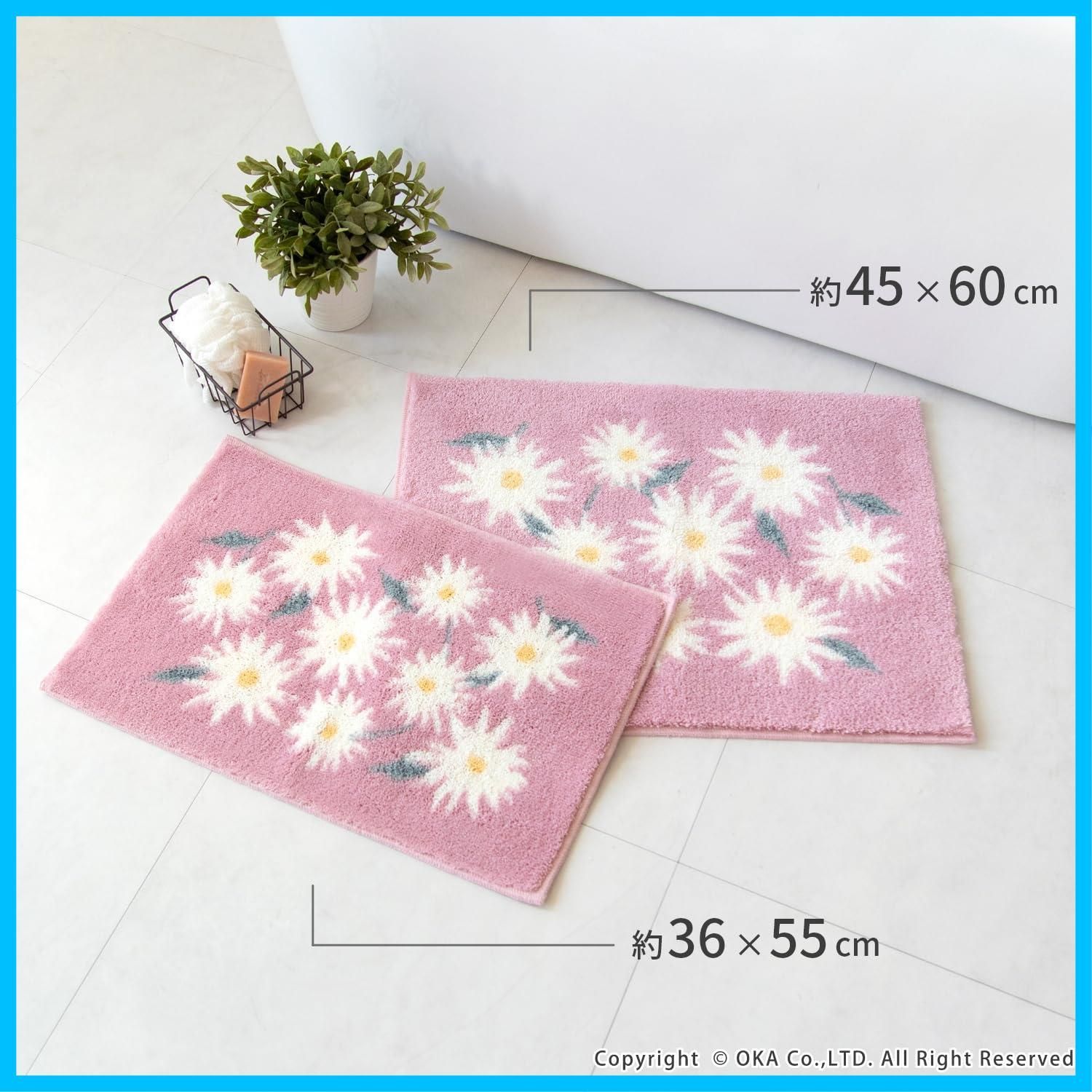 オカ(OKA) 乾度良好ピュアデイジー バスマット 約36cm×55cm ピンク(吸水 速乾 かんどりょうこう 抗菌 防臭)