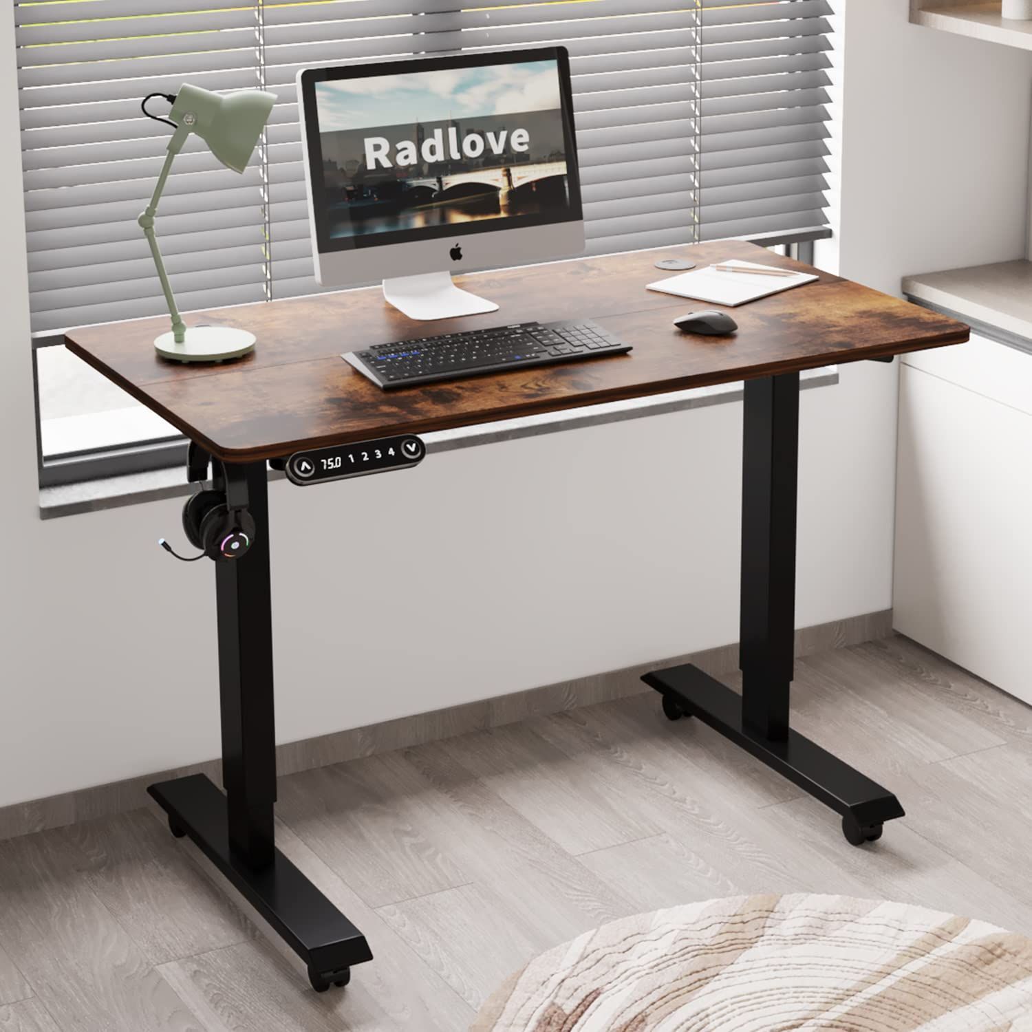 Radlove デスク 電動式 パソコンデスク ゲーミングデスク 机 電動昇降式スタンディングデスク パソコンラック PCデスク つくえ pcデスク 高さ調節可能 高さ調節メモリー機能付き 幅110CM×奥行60CM 高さ 69~115CM ブラウン