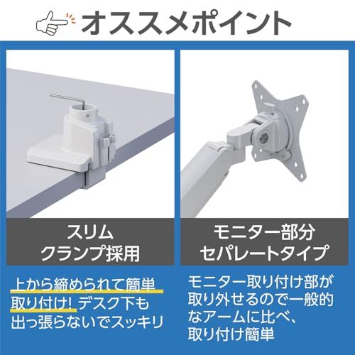モニター部がセパレートタイプなので、一般的なアームに比べて取付が簡単