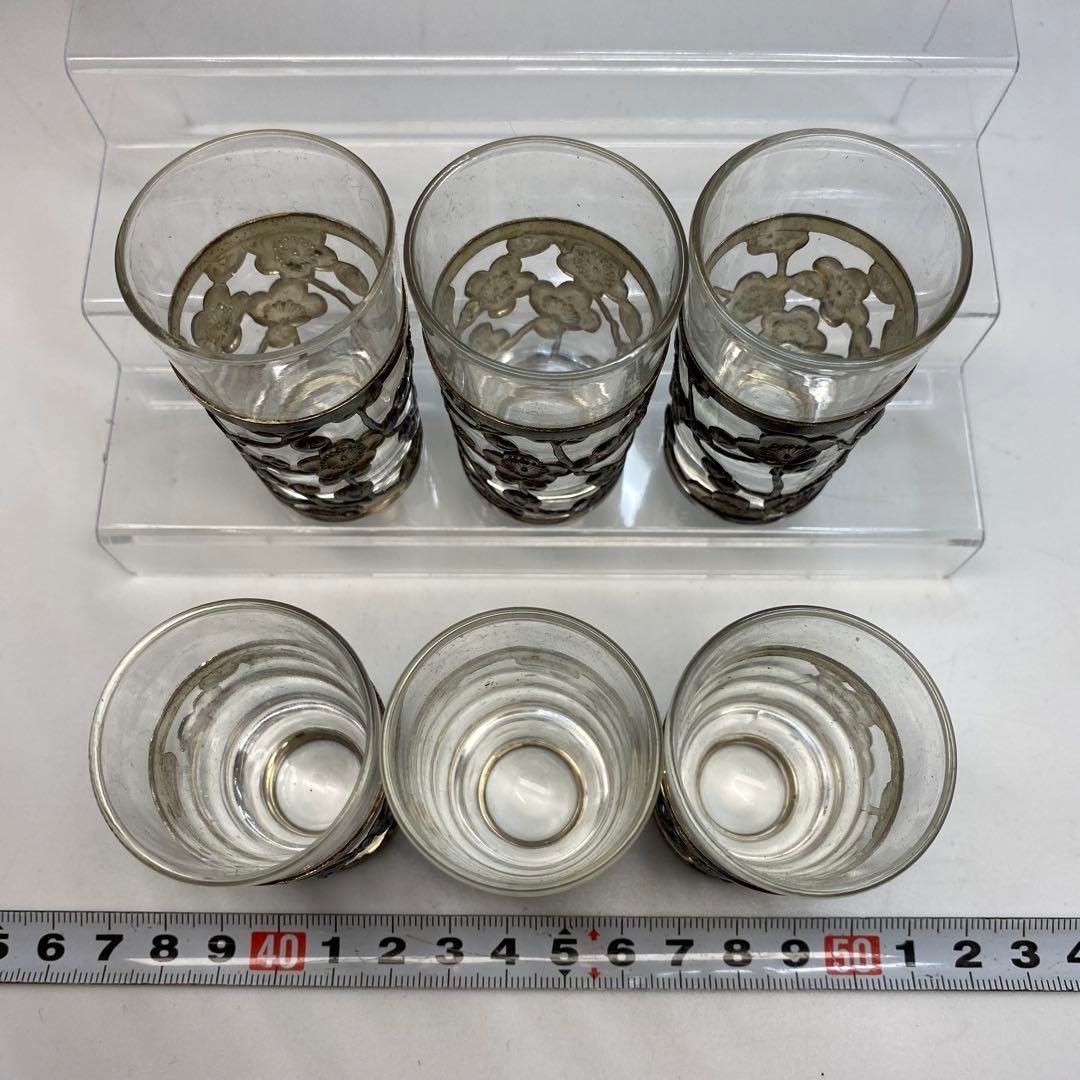 sterling 950刻印 銀透かしショットグラス6点 東Y 6 0606 トコサ