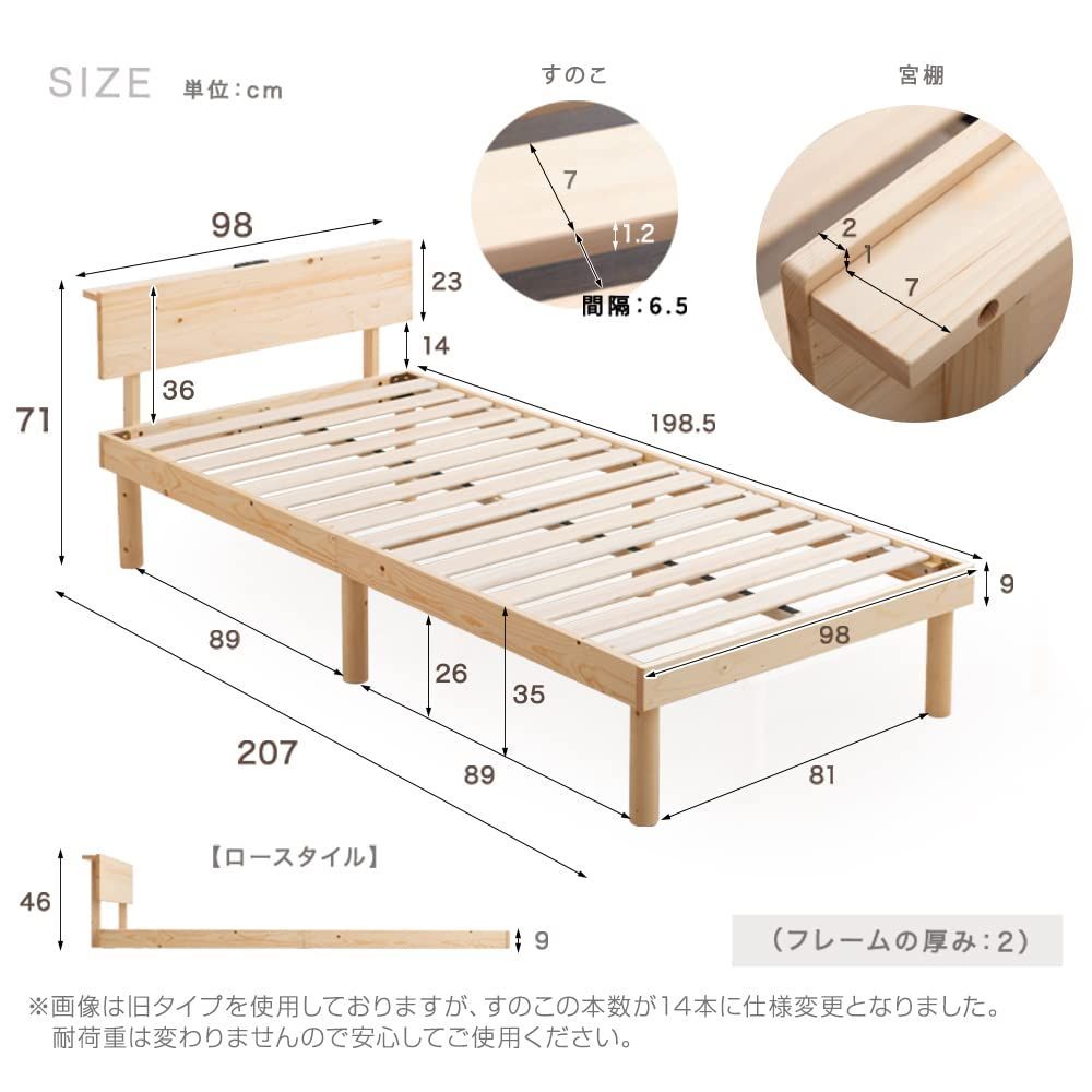 【スタッフのおすすめポイント】 ・枕元に小物を置ける宮棚付き ・寝ている間にスマホの充電が可能なコンセント2口付き ・ほこりが入りにくいスライド式コンセント ・天然木パイン使用 ・通気性抜群のすのこ仕様 ・脚を取り外してローベッドとしても使用可能 ・お子様にも安心のFフォースター塗装 ・2台を隙間なくぴったり並べてキングサイズに