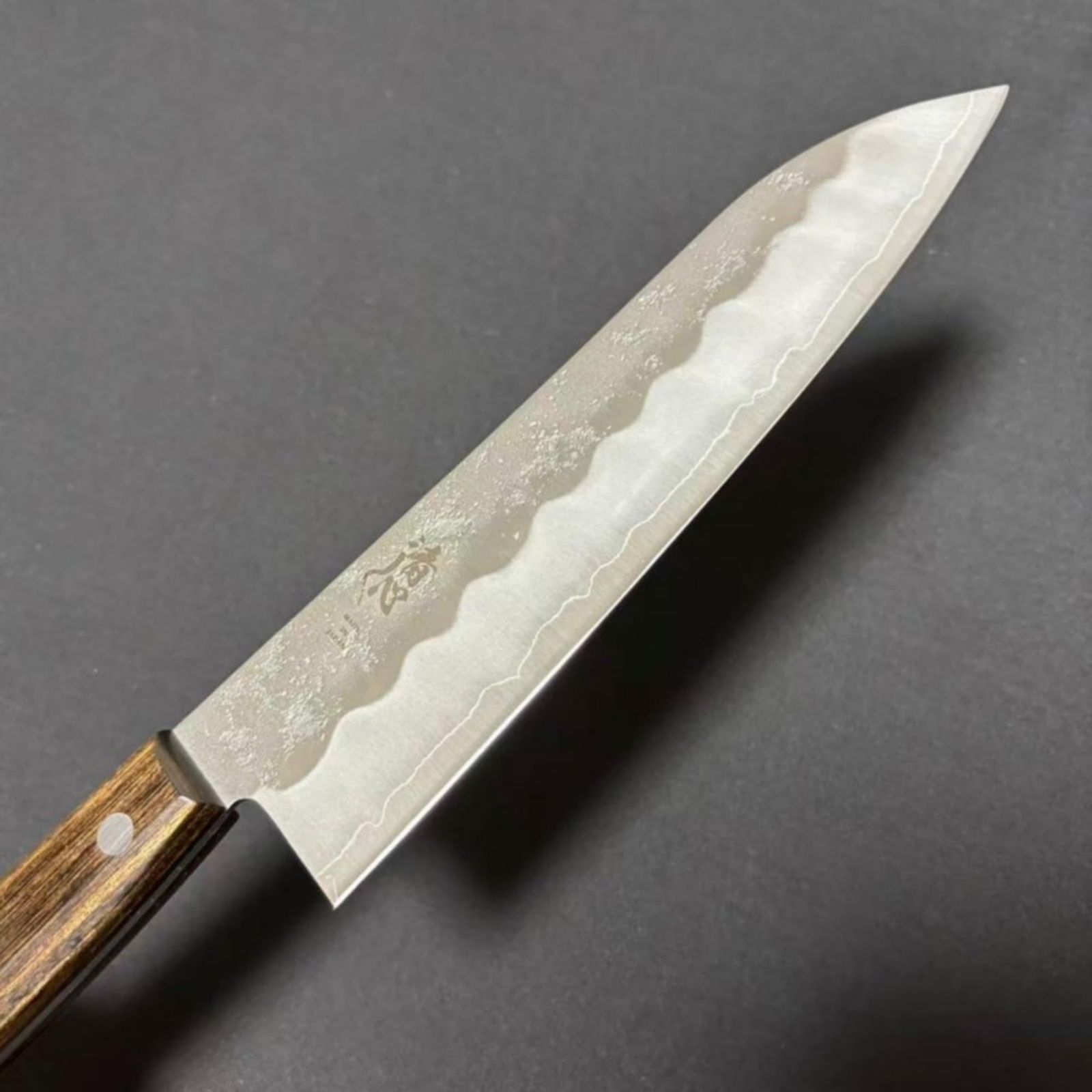 清心 銀三 梨地 顎無焦茶柄 三徳 180 mm Santoku Silver 3 Nashiji Western