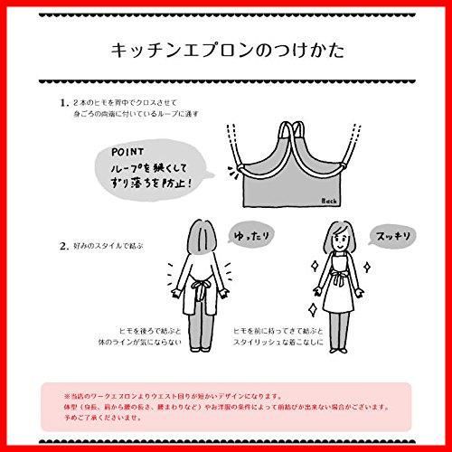 ひざを少し覆うぐらいの長め丈。ワンピース感覚で楽しめるデザインです。両サイドには便利なポケット付。携帯や小物などを入れるのに重宝します。さらに、エプロン両端についている紐通しループは、狭くデザインすることによってずれ落ち防止! シルエットをきれいに保ちます。