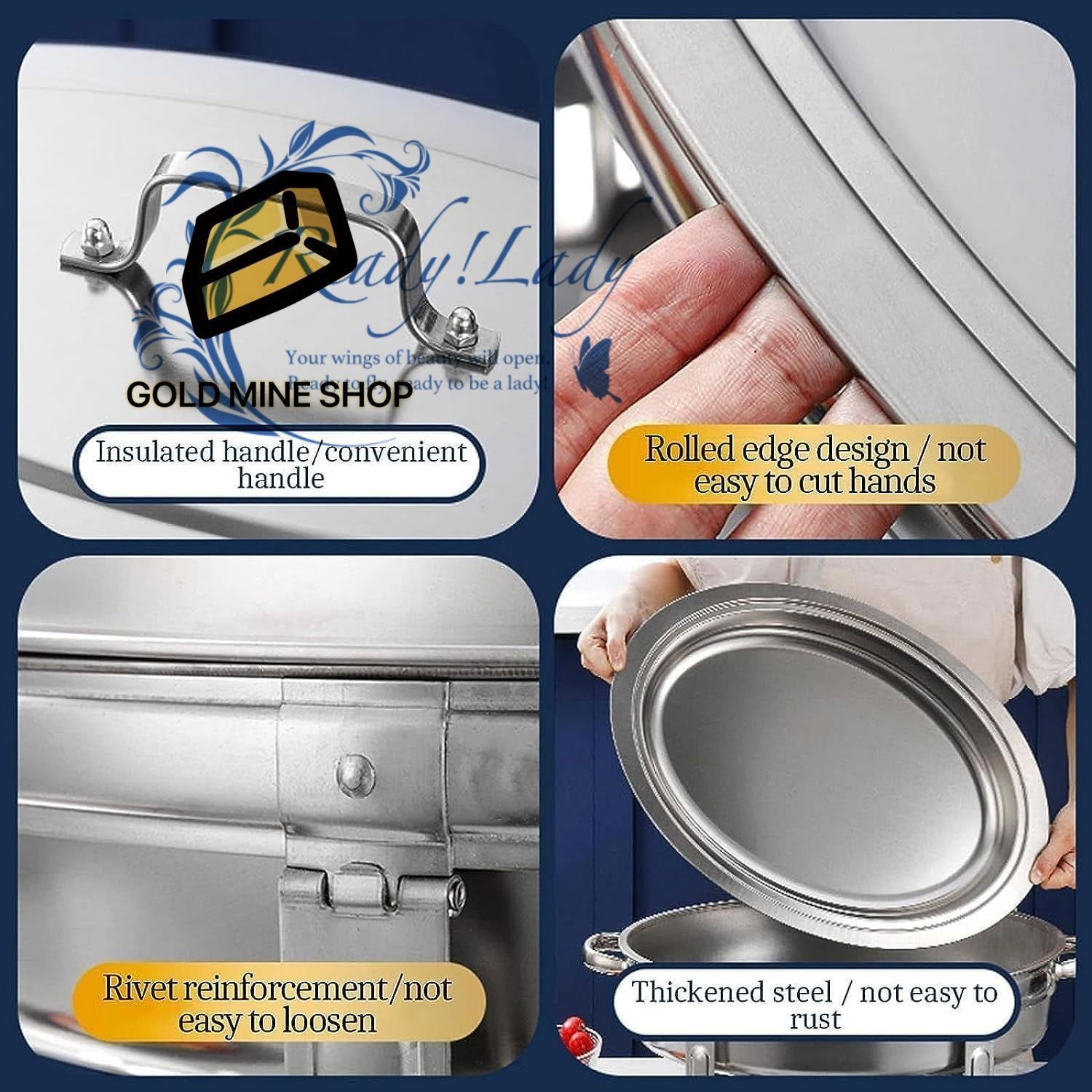 デザイン:高品質の鏡面、キラキラ、食べ物の魅力を完全に反映し、食欲を刺激し、目を楽しませます。各ビュッフェウォーマーには人間工学に基づいた蓋ハンドルが付いており、火傷や怪我を防ぎます。