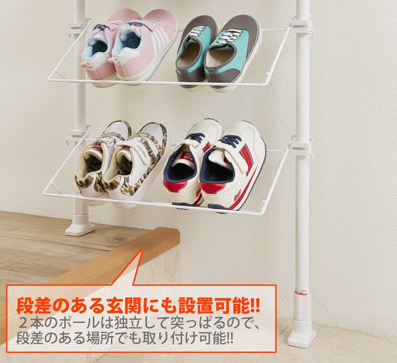 数量 HEIAN SHINDO 突っ張りシューズラック 16足対応 ワイヤー1本棚タイプ ホワイト 幅55 cm高さ190~264 cm TSR
