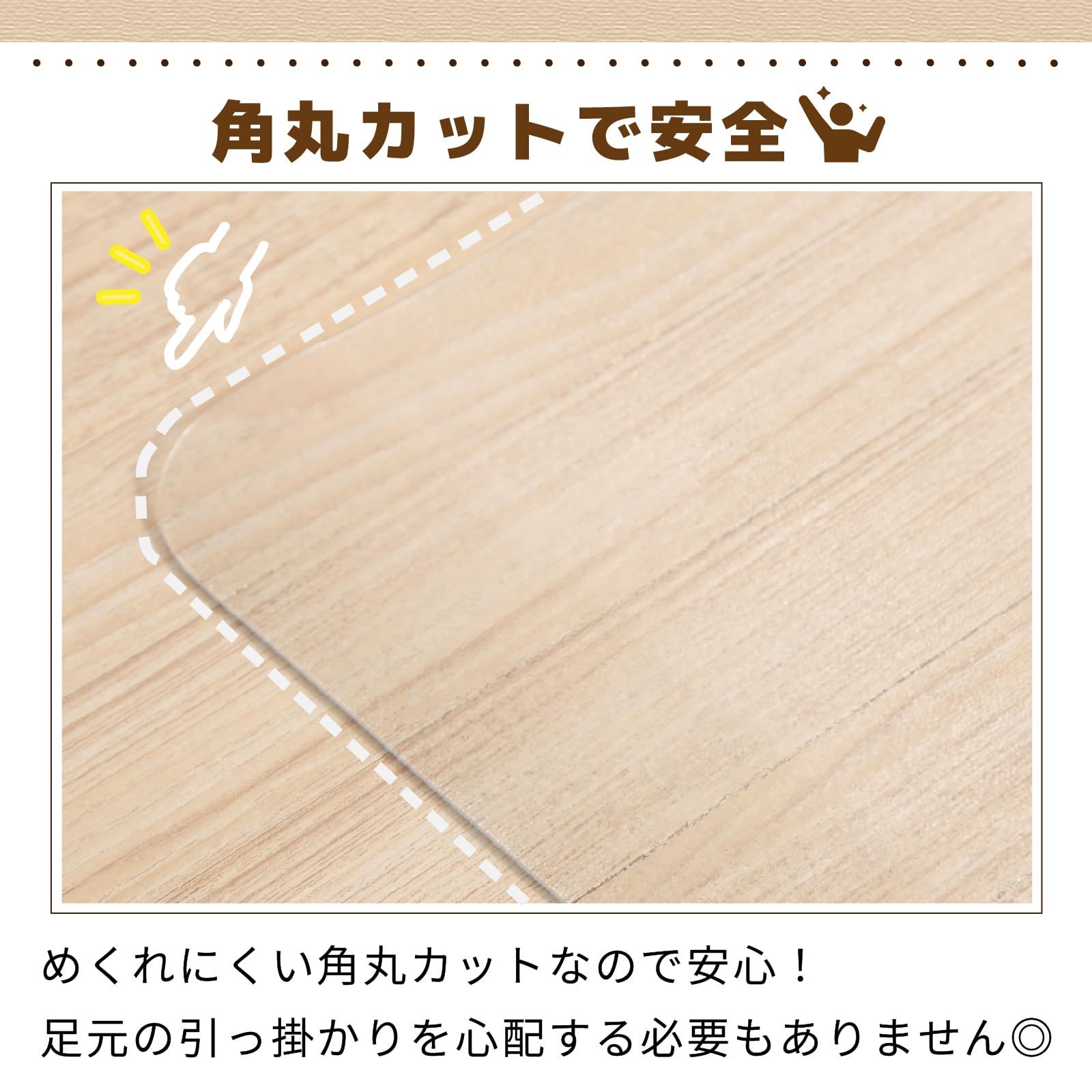 ??【角丸カットで安全】めくれにくい角丸カット加工は施されているため、足元の引っ掛かりを心配する必要がありません。