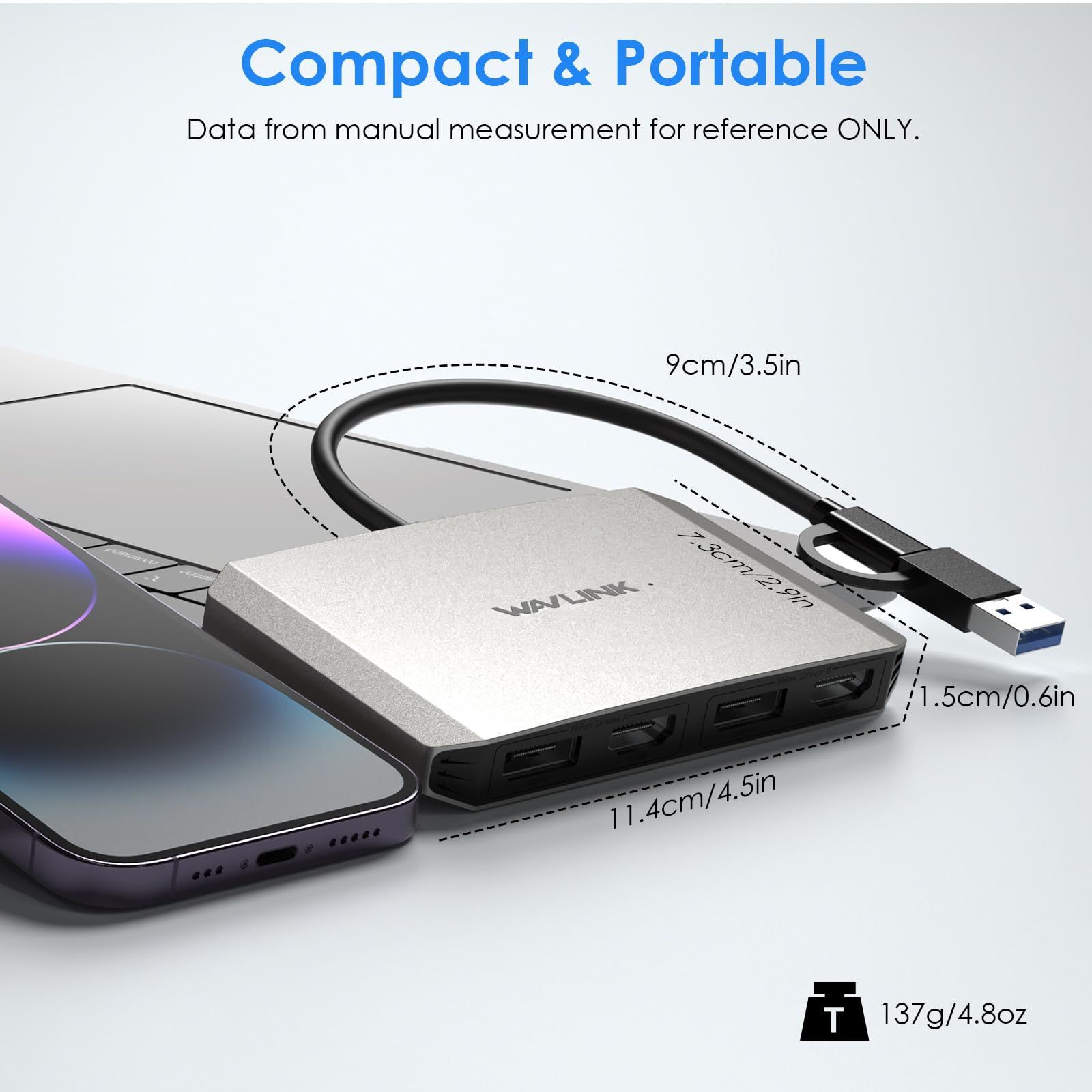WAVLINK USB C & USB 3.0 - デュアル 4K DisplayPort & HDMIアダプター Displaylink HDMIスプリッター 拡張ディスプレイ デュアルモニター 4K@60Hz HDMI/DPスプリッター Mac M1/M2/M3 HP、Dell、Lenovoに対応