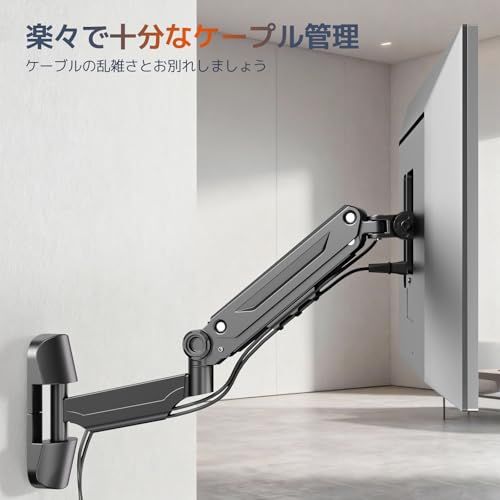 モニターアーム 壁掛け 42インチ対応 耐荷重12? ガス圧式 シングル 液晶ディスプレイアーム 360度回転 VESA 75 x 100 d 0 a 1 b 300