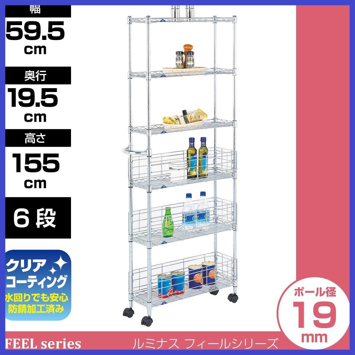 ドウシシャ ルミナス フィール キッチンラック ワゴン スチールラック 隙間収納 収納棚 幅20 6段 サビに強い 防錆加工 組立簡単 キャスター付き 耐荷重80 kg 棚板 ポール径19 mm 幅19 5 奥行59 高さ155 cm MD 2015 6 W