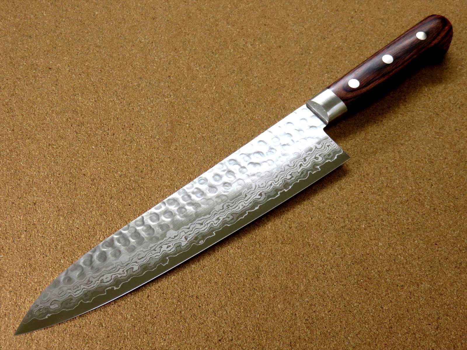 関の刃物 牛刀 21 cm 210 mm 富士觀 ダマスカス 17層 鎚目鍛造 VG 10 口金付 マホガニーハンドル 両刃 万能包丁 肉切り 魚処理 野菜