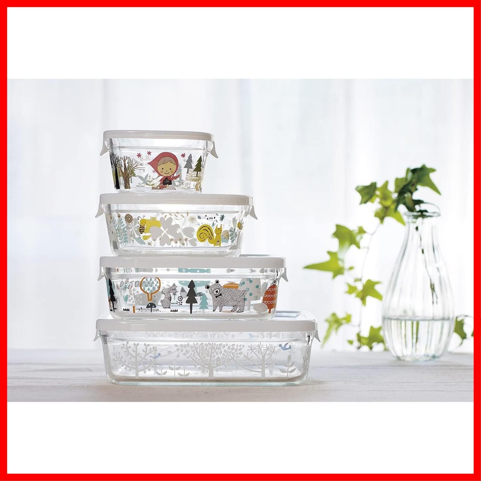 かわいい柄入りパック&レンジのセット保存容器であり、テーブルを彩る器にもなり、調理道具にもなる、1つで3役こなすキッチン容器の優れもの【冷蔵庫スッキリ。ひと目でわかる】中味がはっきりよく見えるので何があるかひと目で分かる【フタをしたまま冷凍・電子レンジOK】保存容器の機能をフル活用でお料理を楽しく【オーブンOK】フタを外せばオーブンOK【フタも本体も食洗機OK】お手入れ簡単。サラッと洗いやすくいつも清潔【におい移り・ヌルヌルが気にならない】ガラスだから変色・におい移りも少なく、あのいやなヌルヌルも気にならない【セット内容】200ml ×2個、500ml ×1個、1.2L ×1個【注意】耐熱ガラスは熱に強いガラスであり、衝撃に強い強化ガラスとは異なりますので、丁寧にお取扱いください