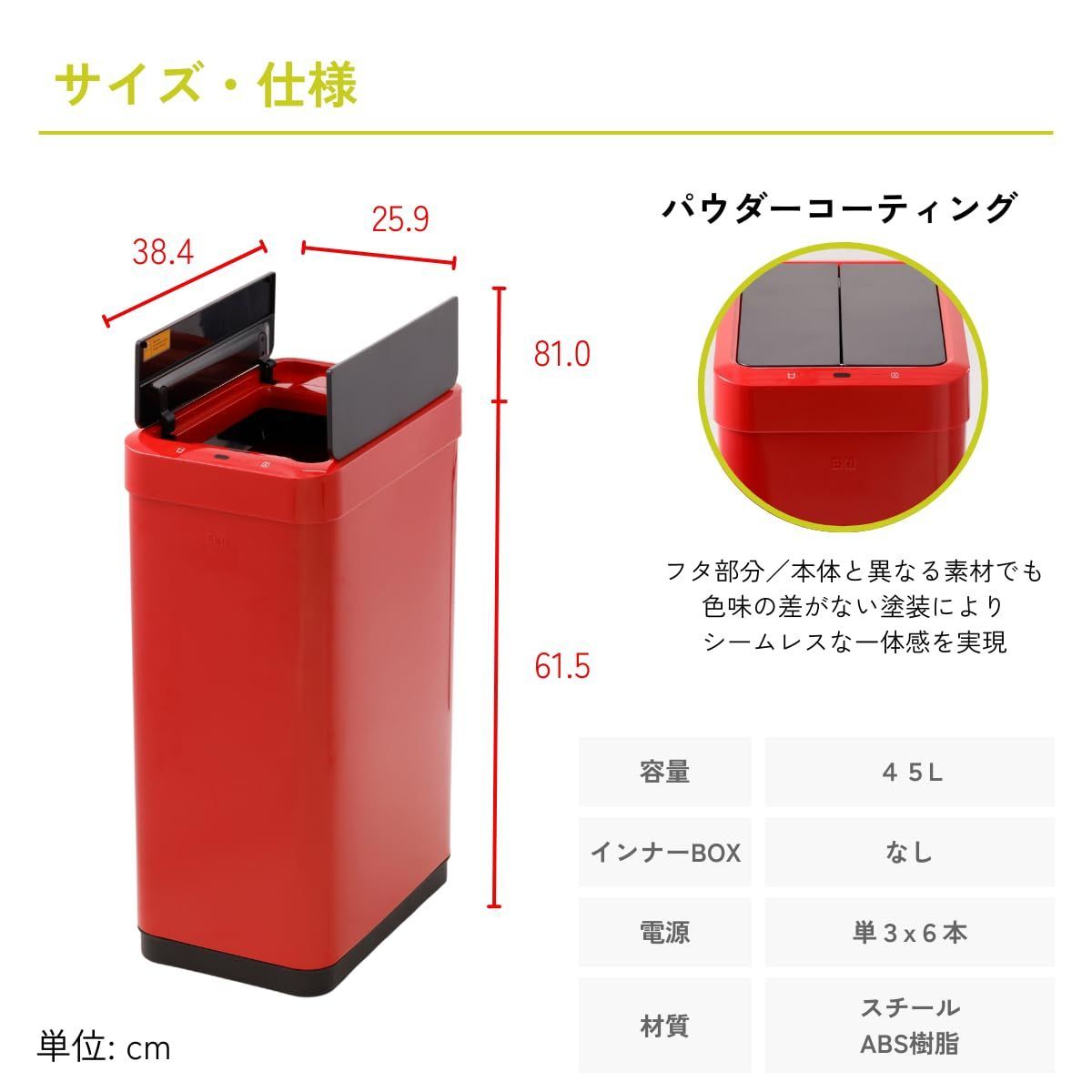 レッド センサービン 45 L ファントムX ふた付き 自動開閉 インナーボックス無し ゴミ箱 イーケーオー EKO