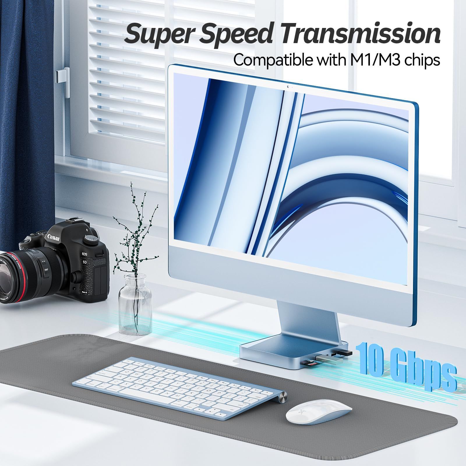 【iMac用オールインワン設計】:高さ2cmに設計されており、iMac2021を自然に拡張できます。アルミ合金素材なので、放熱効率が良く、従来のプラスチック製品よりも高い耐久性があります。このiMac24用アクセサリーは、コンピューターのWi-FiやBluetoothの信号に干渉しません。当社は、このiMac USBハブ向けにカスタマーサポートを提供しております。ご不明な点がありましたら、ご連絡ください。