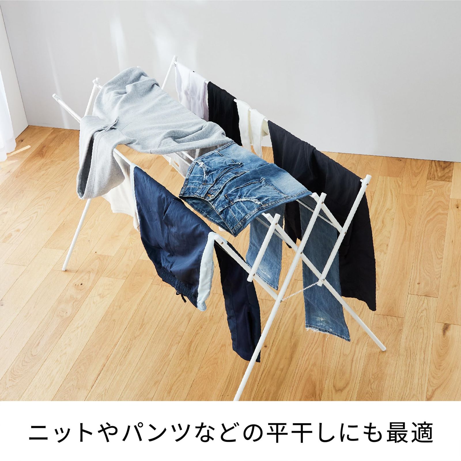 バスタオル最大14枚、コンパクトにたためて布団も干せる物干しスタンドです。マットホワイトの塗装でインテリアにも馴染むカラー。