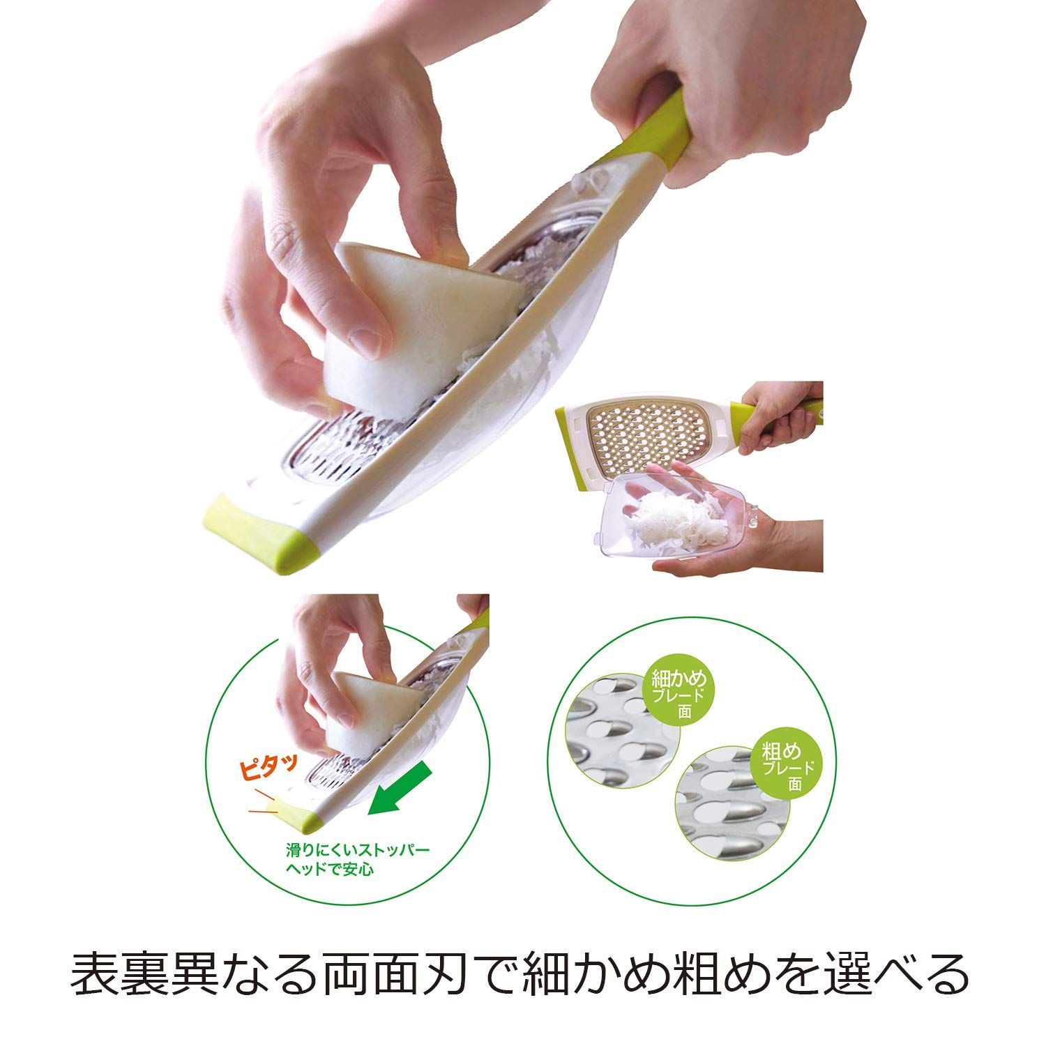 ●裏表で「粗め」「細かめ」の2WAYブレード。●簡単に着脱できるトレイも付いて、こぼさず安心です。