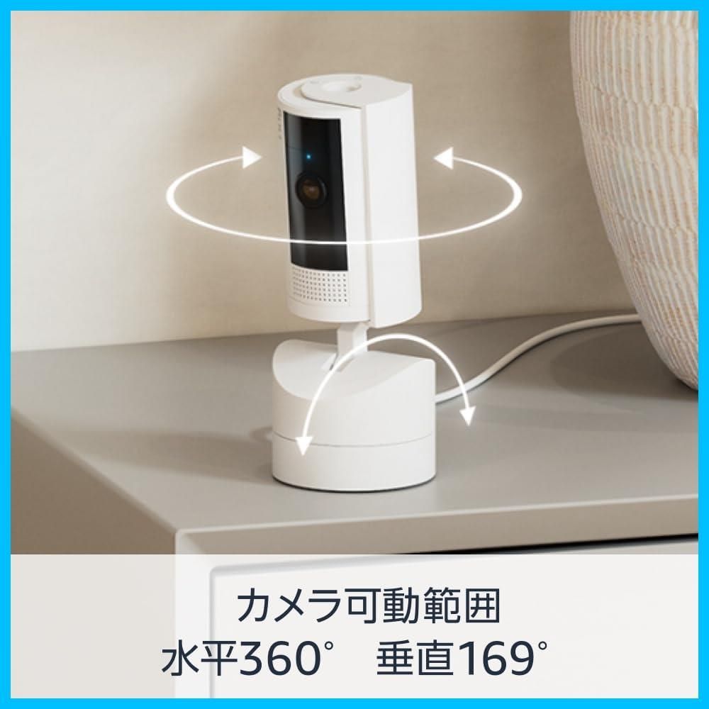 上下169° 左右360° パンチルト 屋内用防犯カメラ Pan Tilt Indoor Cam 首振り機能付きインドアカム ホワイト Ring Homeプラン30日間無料体験