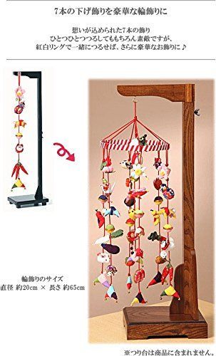セット内容:・下げ飾り 7種 (長さ 約45cm モチーフ 約6cm前後) 子宝(LH-305) 福を呼ぶ(LH-306) 長寿(LH-307) 金運(LH-308) 厄除け(LH-309) 五穀豊穣(LH-310) 子の成長(LH-311) ・紅白リング(TR-7) 直径 約20cm × 高さ 約1.5cm × 厚み 約0.3cm ・説明書 1枚