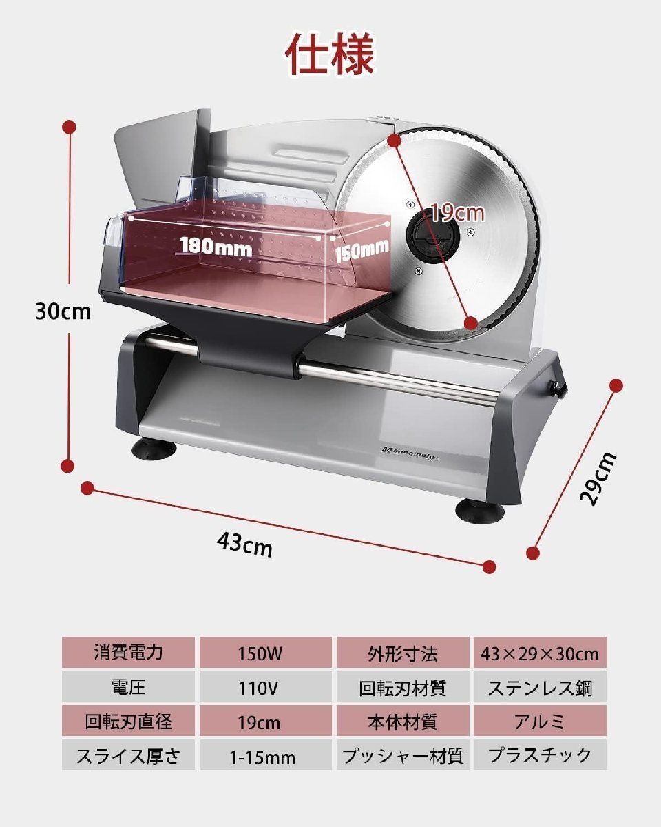電動スライサーミートスライサーフードスライサー電動フードスライスライス厚さ1 15 mm調整しゃぶしゃぶ肉 パン ハム チーズ 野菜 果物