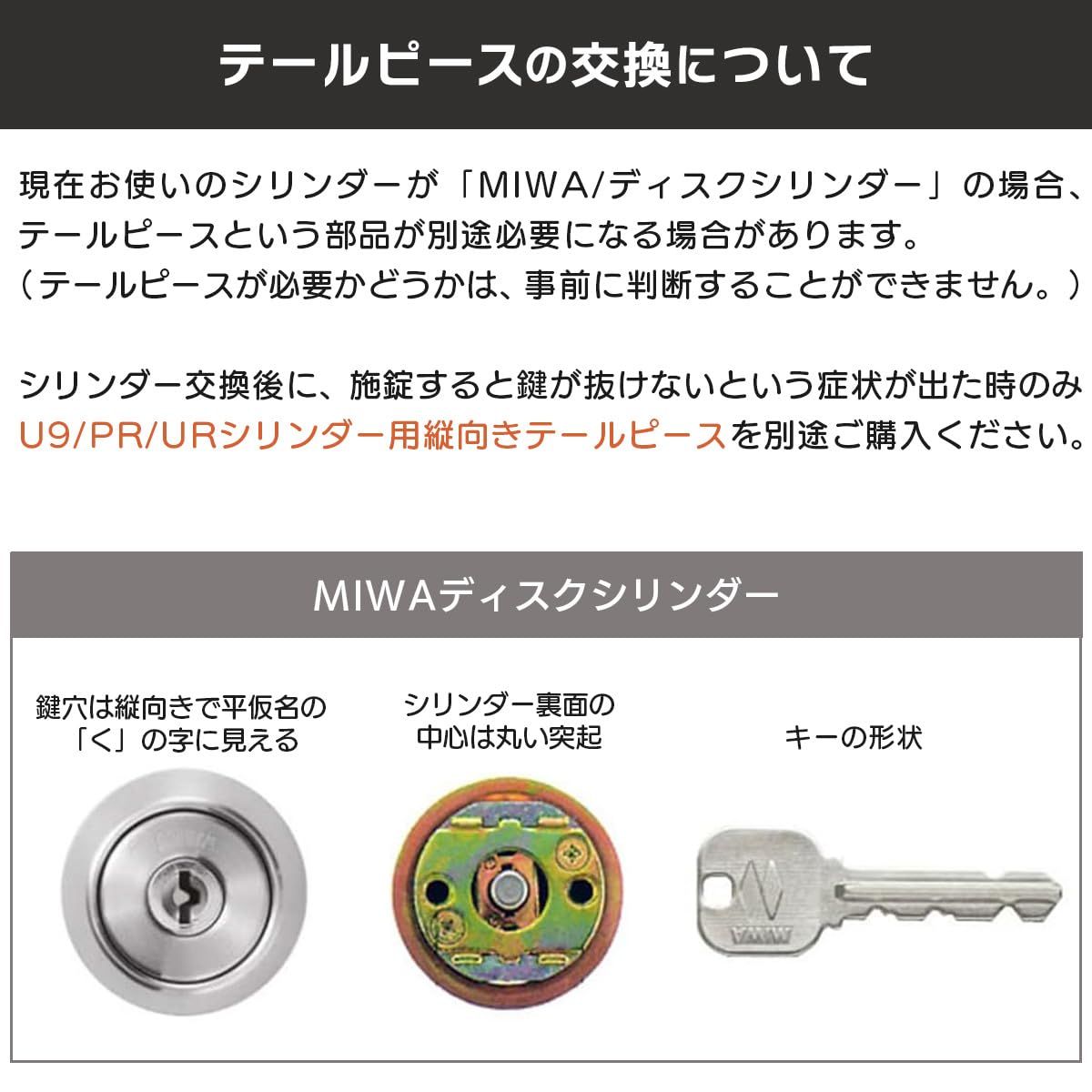 MIWAのディスクシリンダーがついている場合、テールピースという部品の交換が必要なことがあります。交換が必要かは事前には判断できないため、購入して取り付けてみて、鍵が抜けないという症状が出たときのみ別売のテールピースをご購入下さい。