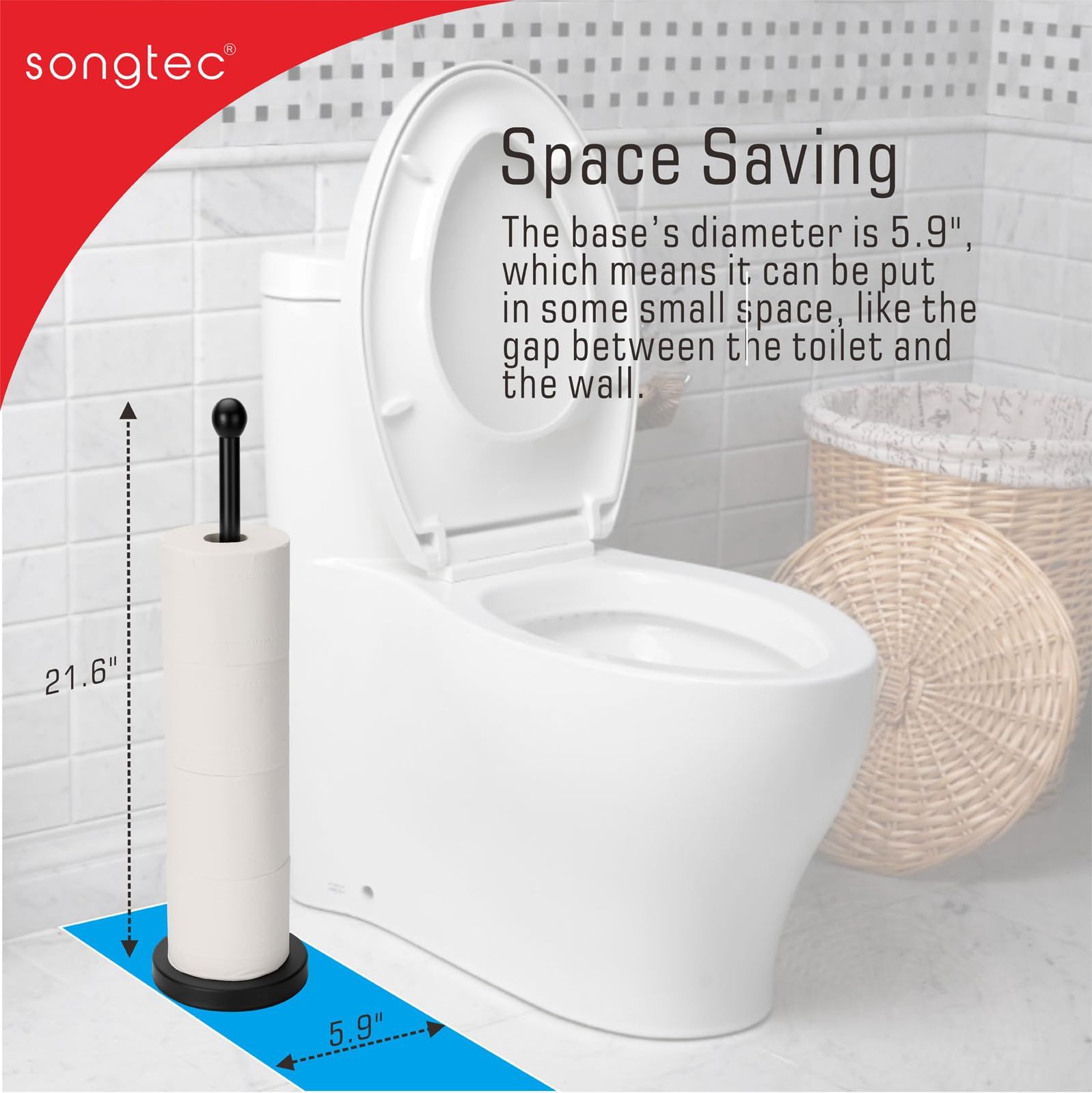 Songtec トイレットペーパーホルダースタンド 予備付き コンパクトデザイン ティスロールホルダー 4ロール用 バスルームトイレットペーパー収納 -