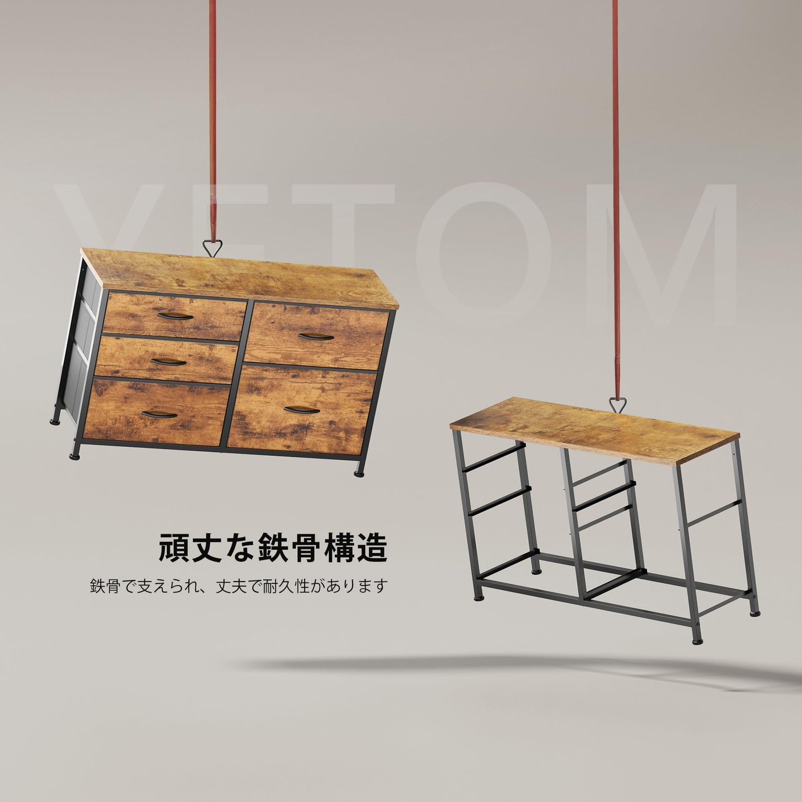 【調節可能な足】 タンスの底部は調節可能な足付き、地面が平らでない場合に対応できます。金属部分の損傷を防ぐだけでなく高さを調整してくれます。