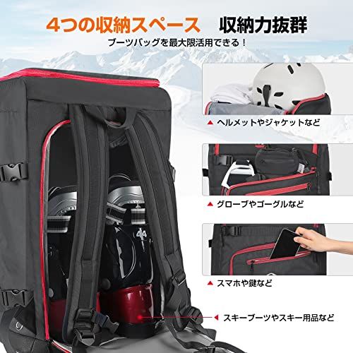 【使い勝手なデザイン】?防水に優れた丈夫なEVA素材を採用し、ブーツバッグの背面を広げればマットとして使用でき、濡れたブーツを入れても水漏れしません。?スキーブーツバッグには錆びにくいサイドホールが付いているので、通気性を確保します。?調節可能なショルダーストラップは、旅行中によりリラックスさせることができます。