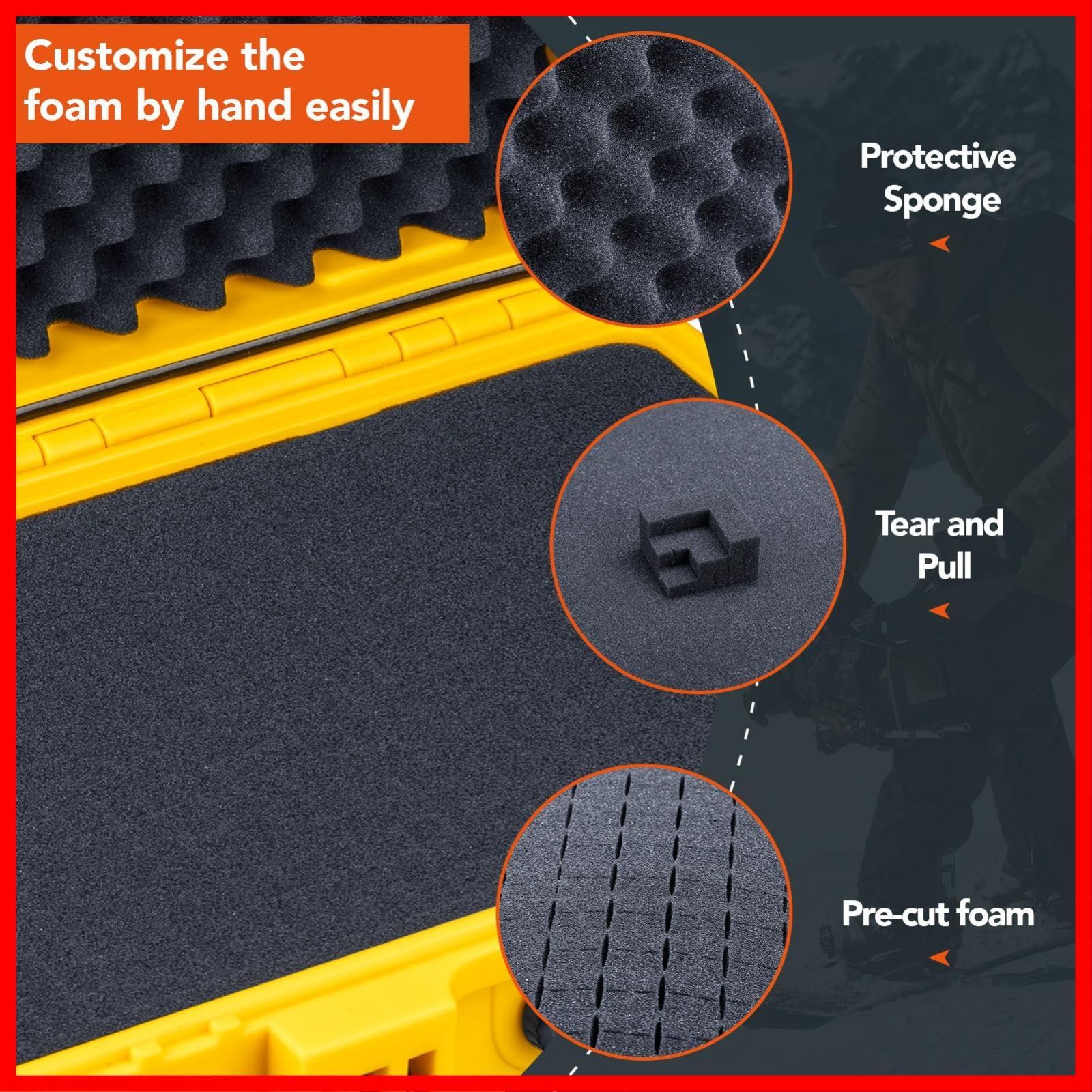 格子状カットスポンジが内蔵 内寸 33 x 21 13 5 cm 防水ハードケース イエロー HC 3310 カメラ ピストル 小型ドローン ビデオカメラ アクションカメラなどに適用 Lykus