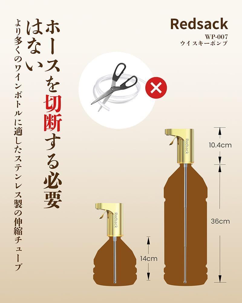 Redsack ウイスキー ポンプ 4 L 2 7 L瓶対応 電動 定量調整可 1 999 ml 計量ディスペンサー お酒ポンプ 充電式ワインデカンター ポアラー 自動ワインエアレーター ウイスキーサーバー デジタル表示 自宅 キャンプ 晩酌 金