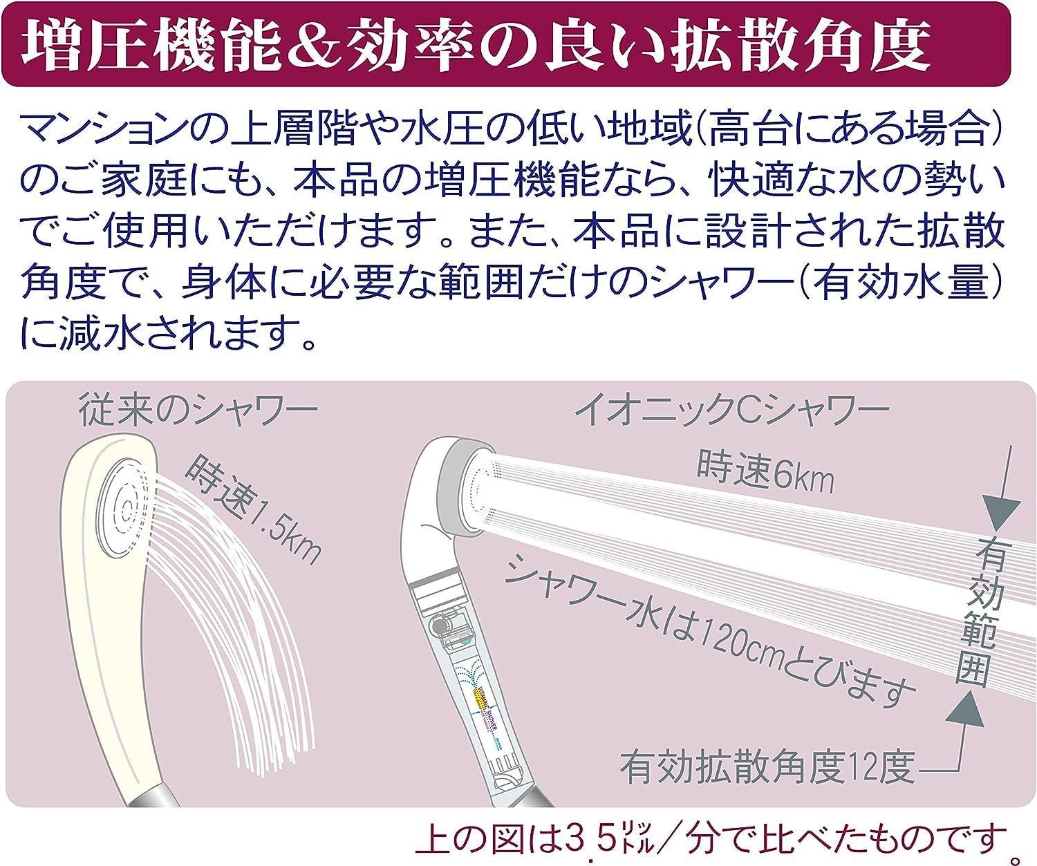 イオニックCシャワーホワイト 最大50 節水 増圧 インジケータ付 ICS 24 N 肌 髪に優しい 1年の保証付 塩素除去 シャワーヘッド アラミック