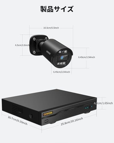 500万画素 122°超広角 OHWOAI HD-AHD-アナログ防犯カメラセット 屋外対応 監視カメラ 録画機セット 防水 赤外線 遠隔監視対応 2台セット モニター ブラック 適格請求書発行可
