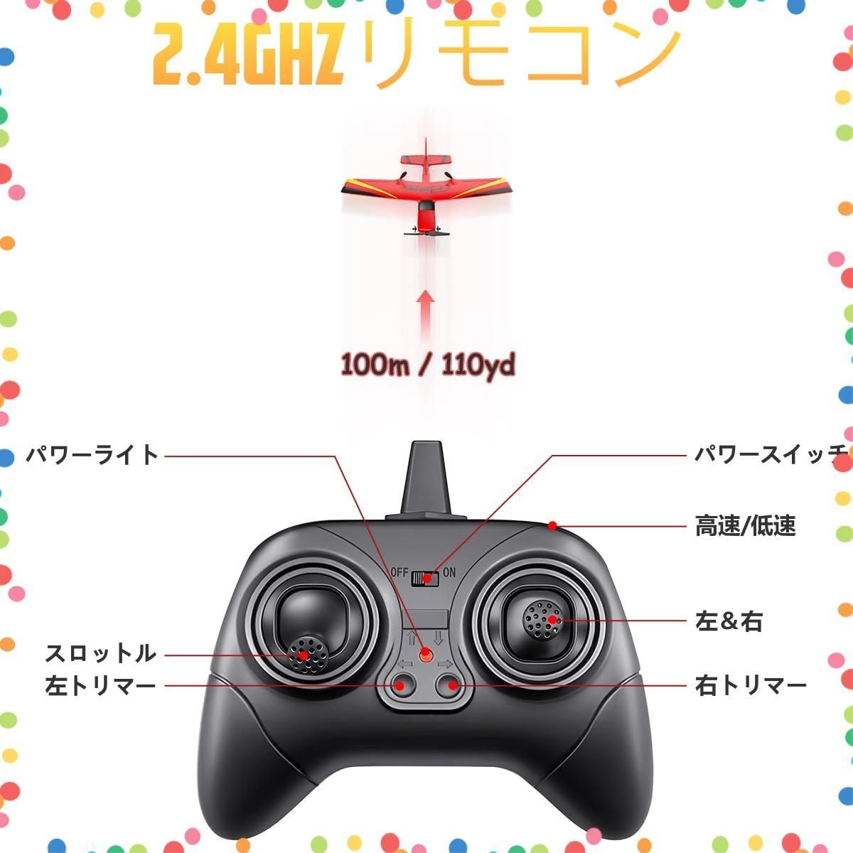 【2.4GHz無線制御システム】リモコンは航空機を制御して、上昇、下降、左折、右折させることができ。2.4Gリモートコントロールシステムなので、複数の航空機を飛ばせても互いに干渉さずに同時に飛行できます。