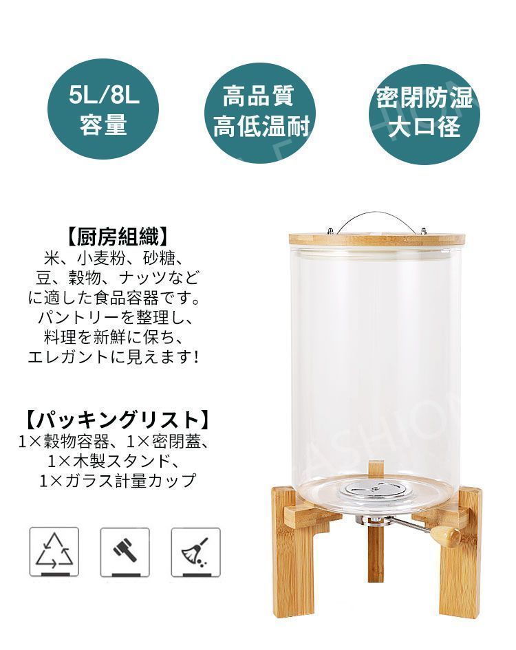 米びつ ガラス 密閉米びつ おしゃれ 米入れ こめびつ ふた付き 計量カップ付 収納ジャー 5 L 8 シリアル 4 kg 6 ディスペンサ