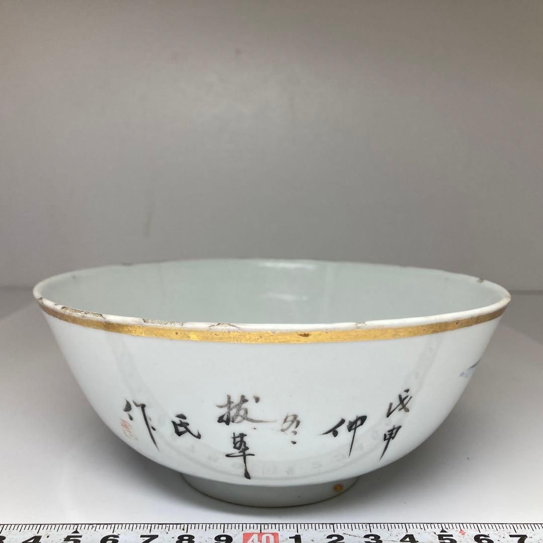 中国清朝時代 粉彩風景画 鉢 直径15 5㎝ タトチ 東な7 0104 2 F