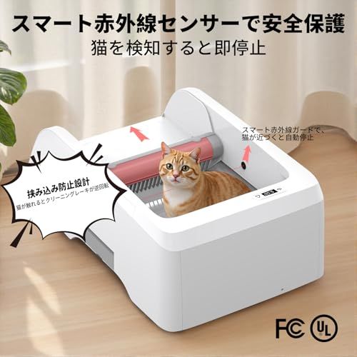【安全挟み込み防止設計】本体には挟み込み防止構造と非常に感度の高い赤外線センサーを搭載。猫を検知すると即時に動作を停止するため、愛猫の安全をしっかりと守ります。