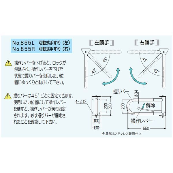 7営業日以内発送 シロクマ NO 855 R 右 550 MM アイボリ 可動式手すり R右550 MMアイボリ 販売不可