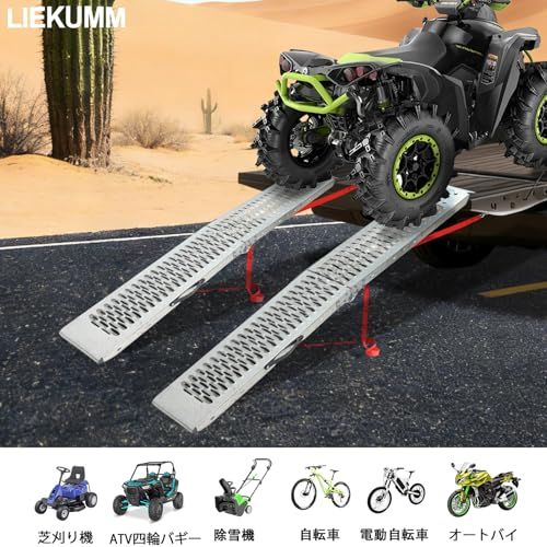 幅広く活躍:本バイクスロープは、自転車、バイク、芝刈り機、ATV四輪バギー、除雪機、小型農業機械などの積み下ろしに最適です。トラックやトレーラーへの機材・貨物の積載時に活躍し、段差の解消にも役立ちます。